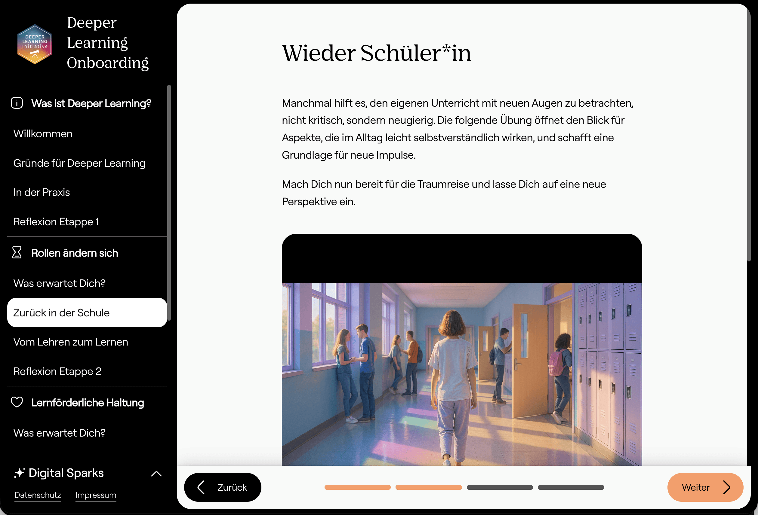 Gemeinsam haben Digital Sparks und die Deeper Learning Initiative ein Onboarding entwickelt, das diesen Wandel sichtbar macht. Es ist eine Einladung, die eigene Rolle kritisch zu hinterfragen, neue Perspektiven einzunehmen und Veränderungen im Unterricht praktisch zu erproben.