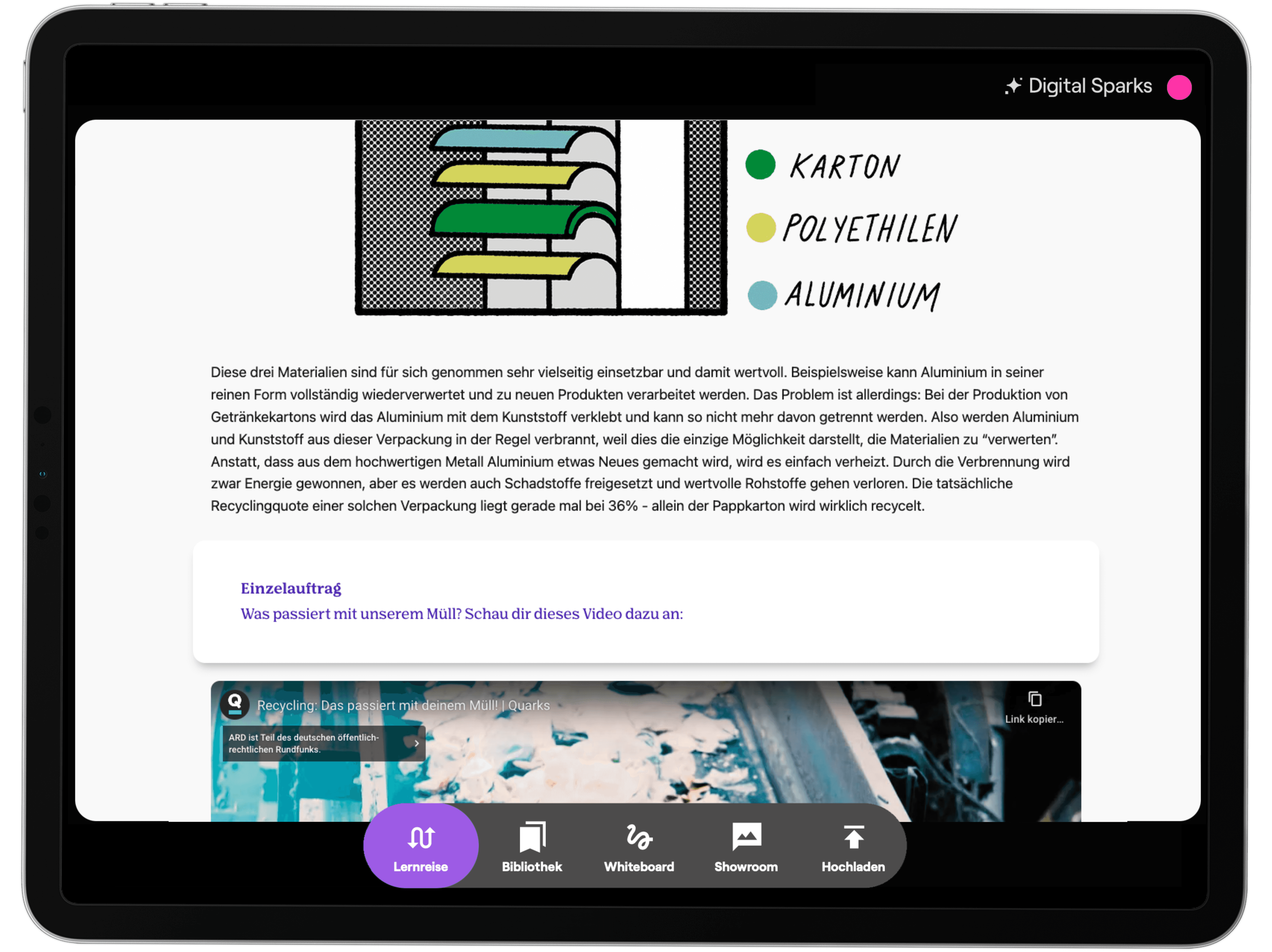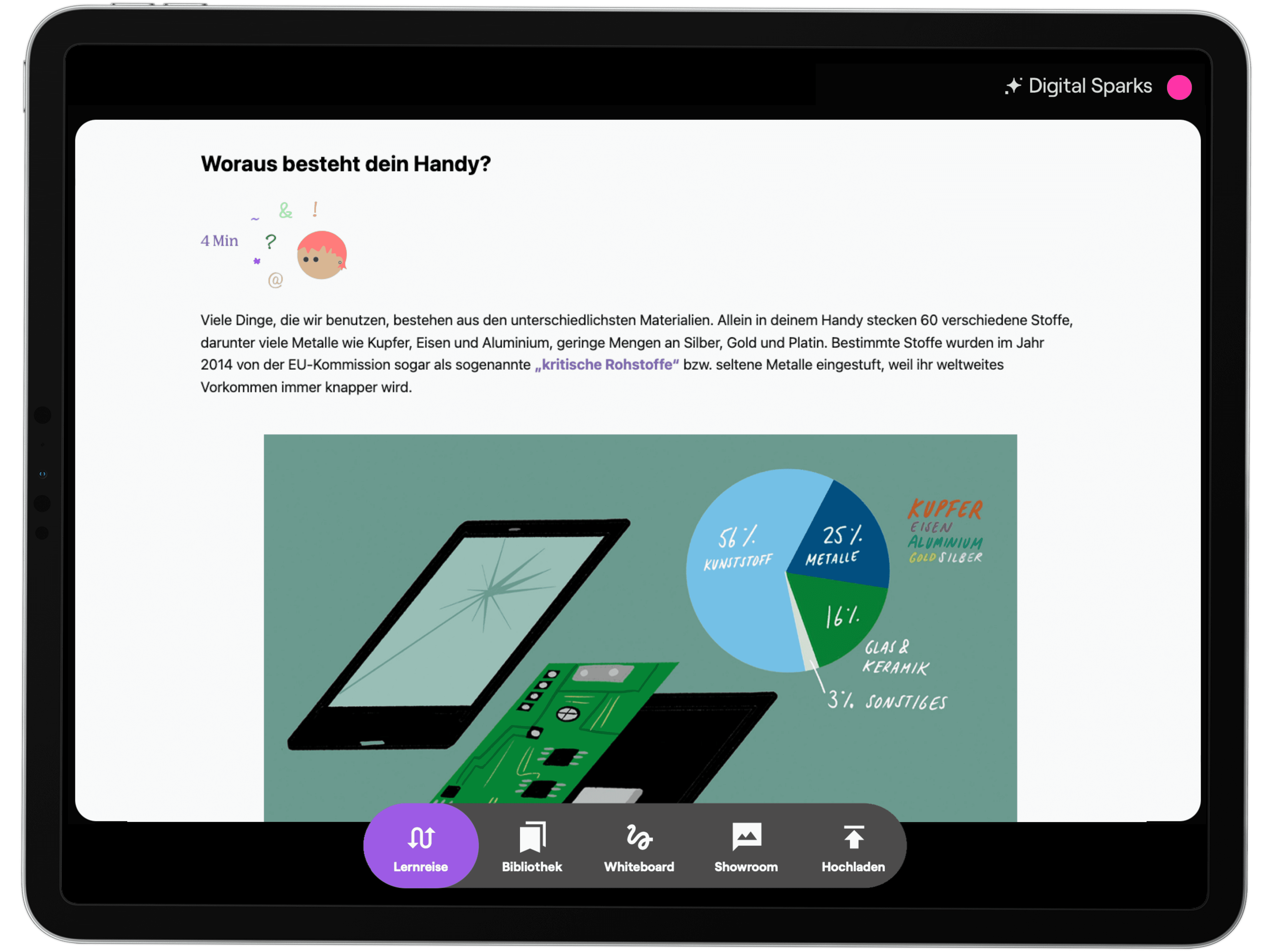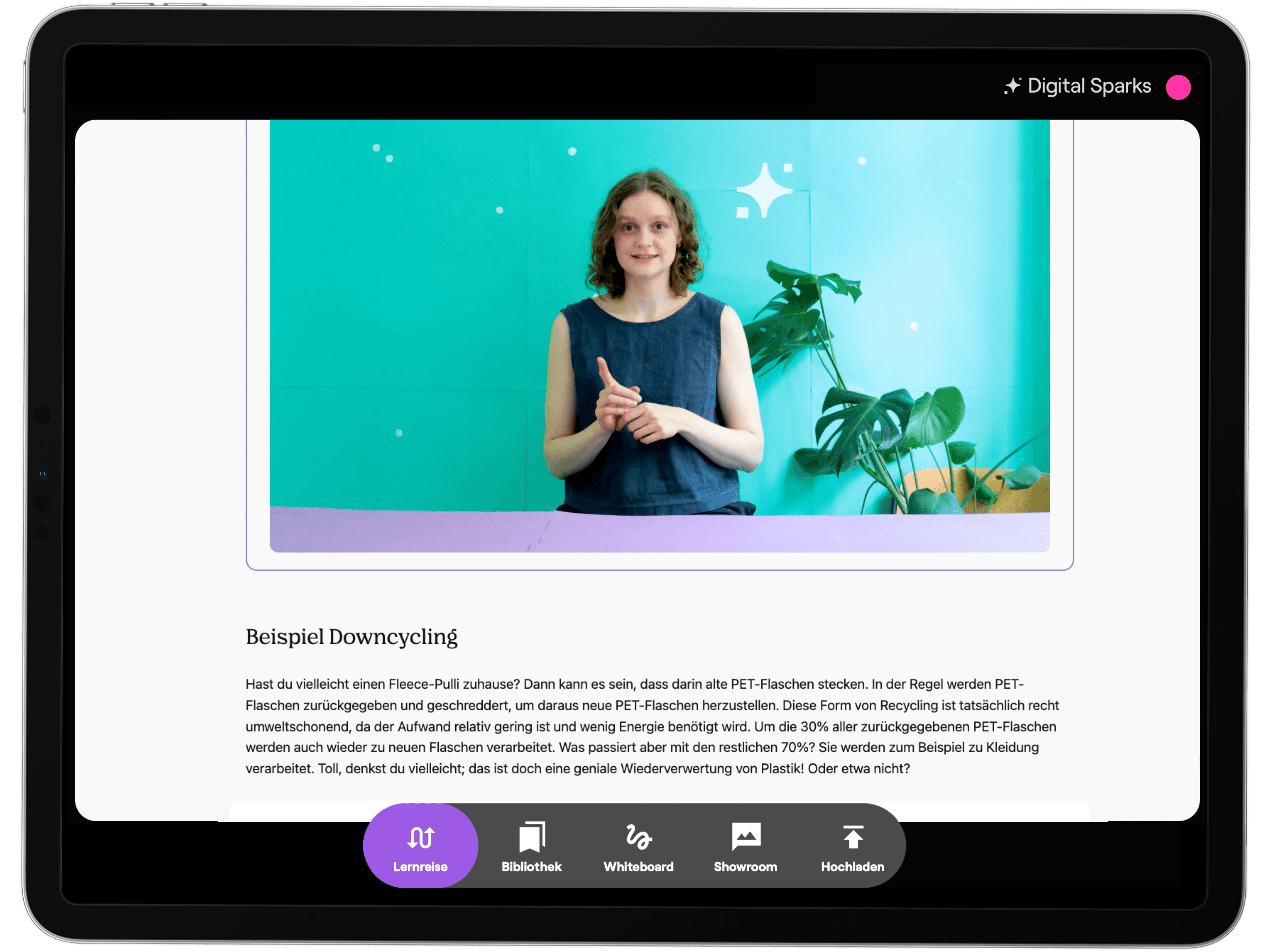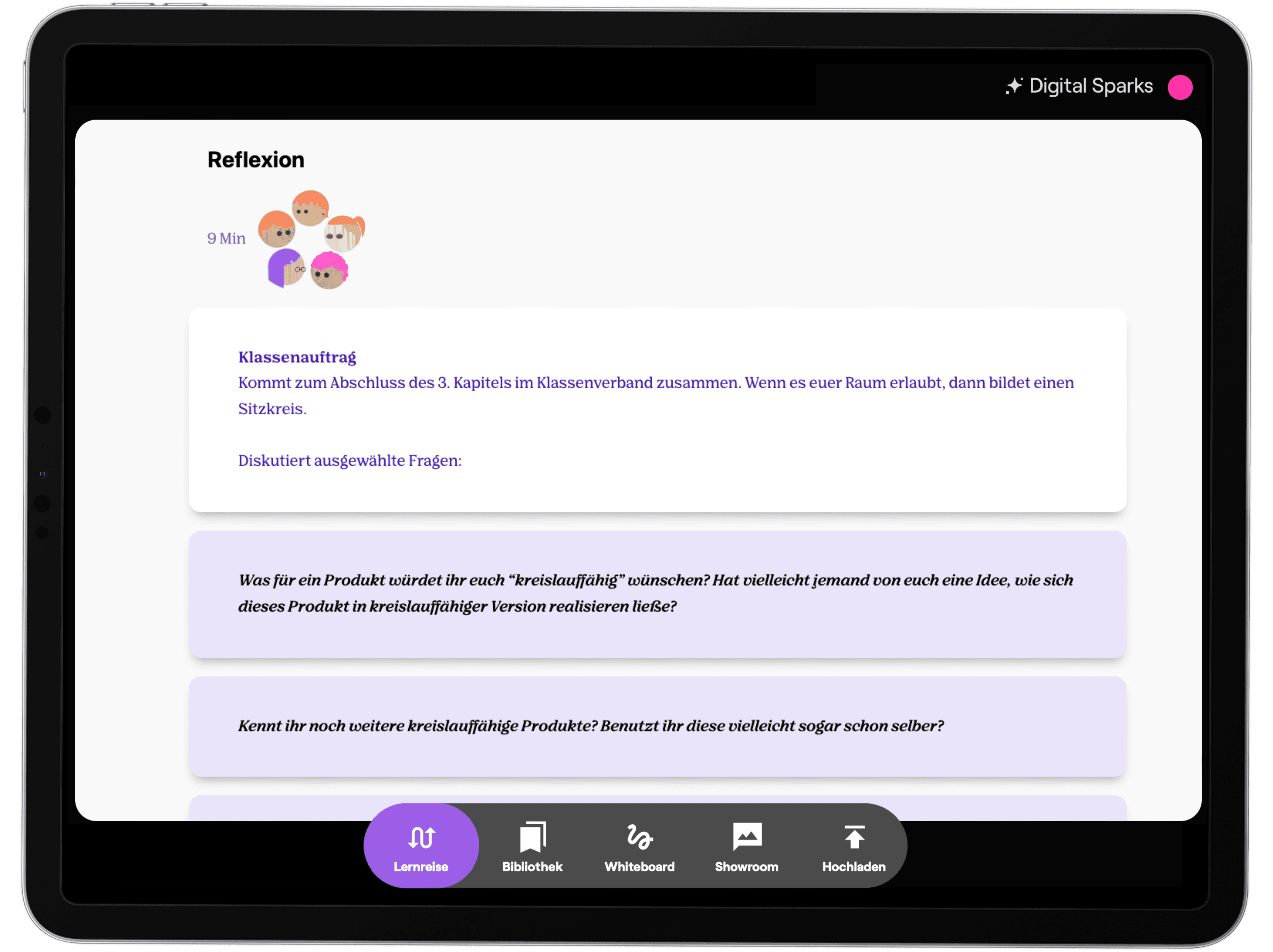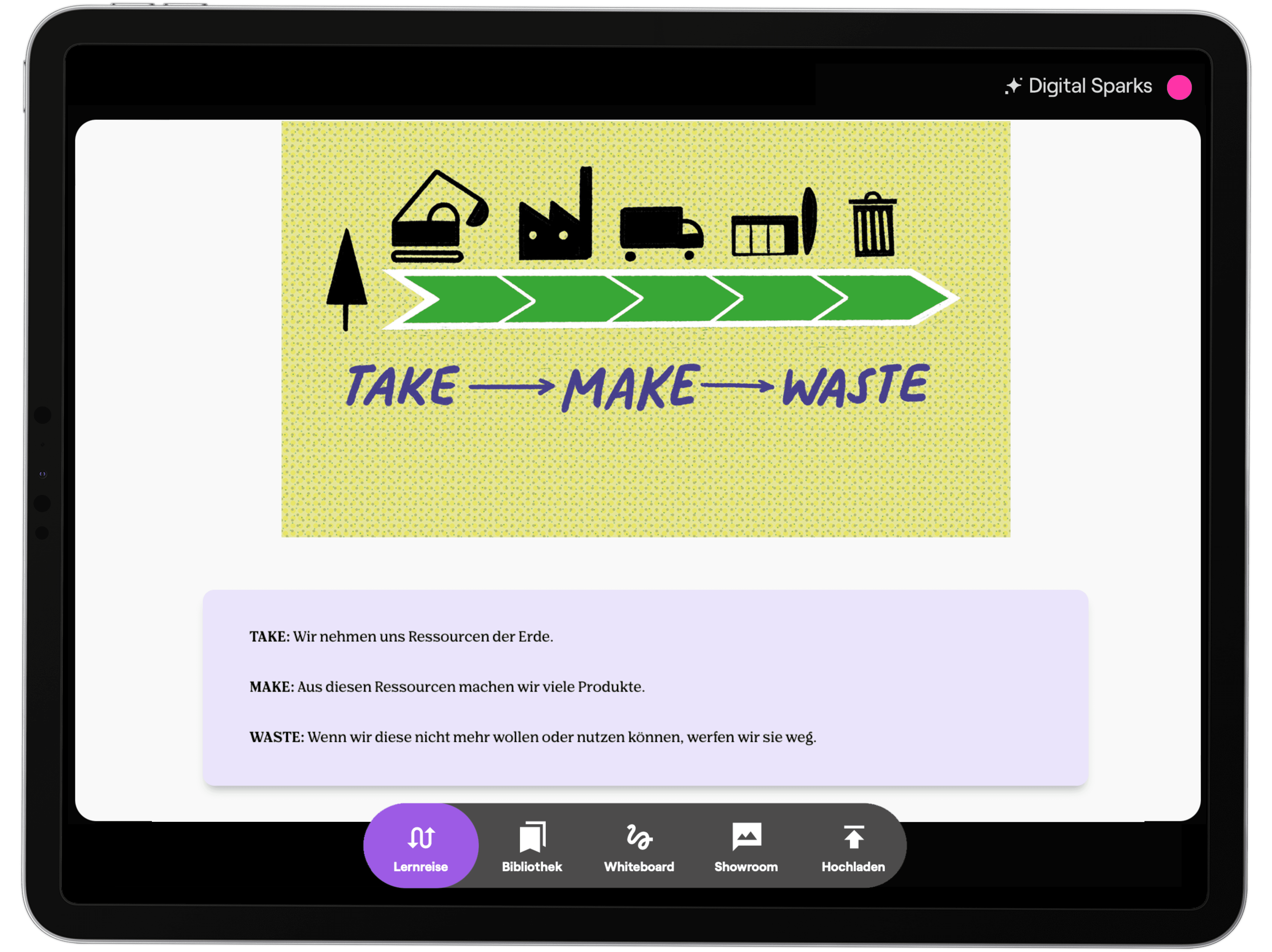 In diesem Spark setzen sich Schüler*innen damit auseinander, was eine Kreislaufwirtschaft ist und wie eine Gesellschaft so umgeformt werden kann, dass wir auf eine nachhaltige und positive Zukunft zusteuern, die wir aktiv mitgestalten können. Zusammen mit Expert*innen schauen sich deine Schüler*innen verschiedene Bereiche der Produktion an, lernen Beispiele von kreislauffähigen Produkten kennen und Orte, an denen Menschen bereits eigene Materialkreisläufe erschaffen haben.